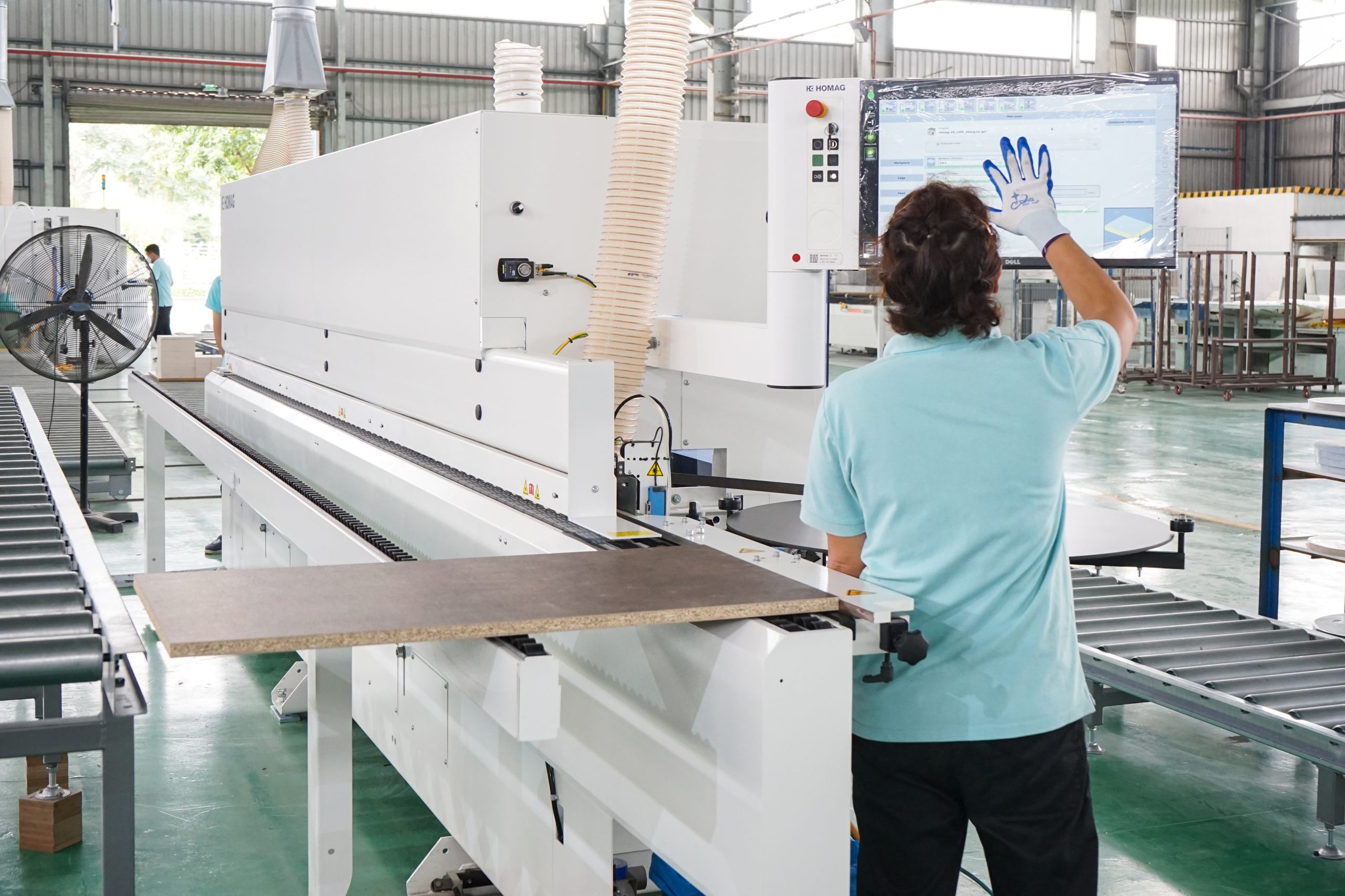 Sở hữu xưởng sản xuất riêng với quy mô lớn tại Đồng Tháp, Homemas chuyên cung cấp dịch vụ gia công và sản xuất nội thất theo thiết kế riêng hoặc đơn hàng OEM – đặc biệt mạnh về tủ bếp, tủ áo, bàn đảo, vách ngăn và các sản phẩm gỗ cao cấp.